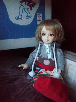 ↑の写真は実家でケータイで撮ったもの。家にいる時はお迎えしよう、なんて思ってなかったので何もお洋服とか持って行ってなかったんです。ウィッグは空美都(TFルイス)用に購入したもの(もともとこれが目当てで行った)。洋服は連れて行っていたてん子さん(PAIエリエル)の上着。