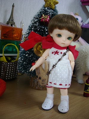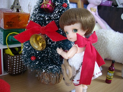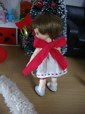 このリボンがツリーのリボンとそっくりでかわゆいと思いました。ツリーの精のよう!?