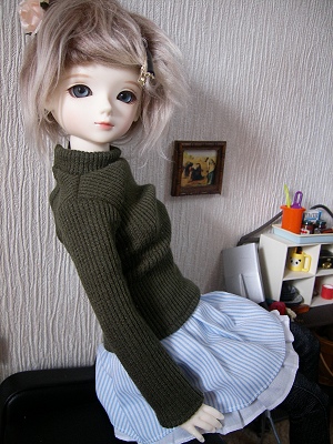 この写真はTシャツお披露目(?)のために撮ったはずなのにTシャツがさっぱり写っていないという意味不明の写真です(笑)乳児引きで撮るとおめんみたいなんだもん(笑)普通肌で素体変更するべき?! いや、メイクをちゃんとやれば写真にもきれいに写るようになるはず…。