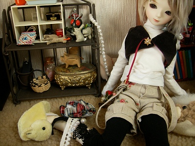 頭にコサージュをつけてみました。どんどん花鳥鳴(TFエミリー)の頭が大きくなっていくような…。