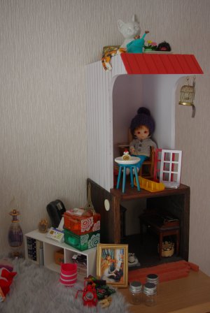 方々で見かけ、(買ったらいいと某お方からちょいちょい勧められ、)先日のドルショで生でじっくり見て、ウワサのリーノハウスを購入しちゃいました。まずは小さい方(大きいのもいいな)。他にもドールハウス小物が売っているショップさんだったので、小さい物をたくさん購入。