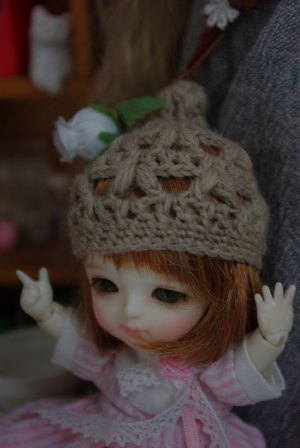 そしてそして、お帽子は蜜夏月ポケットの蜜豆さんからドルショで差し入れのお返しにと戴いた品です。お洋服とは全然違うテイストなのに嬉しくてかぶせずにはいられなかったよね!(笑)