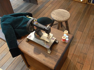 布や糸が収納されている棚だとか精巧にセットを組まれていましたよ。実際に巻かれた糸、布。ホントに切れる(と思われる)ハサミなどなど、実際使えちゃうものが置いてあることに感動しっぱなしでした。