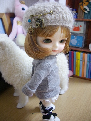 この毛糸の帽子とピンブローチ(と呼ぶのかな?)です。