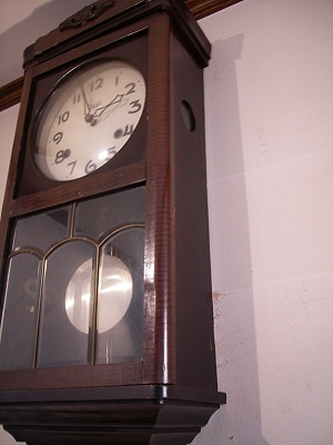 見上げると人間用のサイズの時計が。アンティーク! すてき!