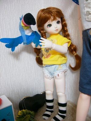 ほどいた(元)みつあみウィッグですが、前髪をちょっとカットしてみました。こんな金髪ふわふわなのにはねっかえりの妹、という設定(?)が大好きなので、お洋服もそのイメージでヒラヒラふわふわなものを着せたいです。コレはカジュアルだけども。窓から抜け出して泥んこになって帰って来るといいよ。