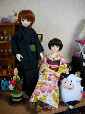 着物着た2人で撮ったら夫婦みたいになってしまいました(笑)遠鼓さん(MSDF‐9)が着ているのは晴れ着というかお振袖ではないんですが女の子のお着物これしかないので帯に色々付け足して…。去年もこんな感じ。伊吹(TFトミー)は初めてのお正月。美白に黒っぽい着物着せたのは失敗でしたね…。でも空美都(TFルイス)はイベントとかめんどうくさい派のような気がして。イベントするのは妹たちのためです。伊吹(TFトミー)は好きそう。女子の着物も嬉々としてきますね。きっと。振袖若衆ね。