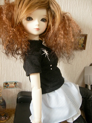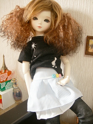 この写真はTシャツお披露目(?)のために撮ったはずなのにTシャツがさっぱり写っていないという意味不明の写真です(笑)乳児引きで撮るとおめんみたいなんだもん(笑)普通肌で素体変更するべき?! いや、メイクをちゃんとやれば写真にもきれいに写るようになるはず…。