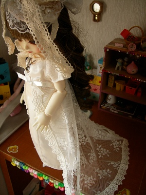 お誕生日プレゼントはドレスです~。クリスマスは黒だったので白を。ウェディング用なんですけどね(笑)ドレスから垂れる長いレースがお気に入りです。