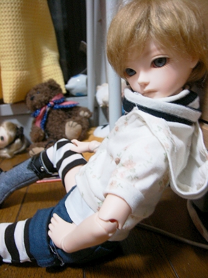 空美都が着ているのは、中は自作のタンクトップ、上着はGakinchoさんの(chiekoさん作)プチアイ用の(笑)タンクトップはあまりにも寒そうだったので(笑)下もGakinchoさん(tomomiさん)の。ブーツは小さなお店さん。首にはサングラスがかかってます。TinyTeaTimeさんで購入のアイウェアコレクションです。男の子らしくなってます!