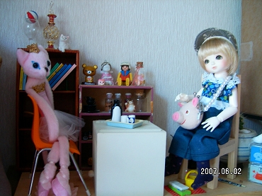 このイス座りにくいんですよね…。あ、なんか前後間違えてつけちゃってたのか。今気がついて直しました。どーも前に傾いているなーと思ってたんですよねー(笑)座らせてもズルズル滑り落ちる…。