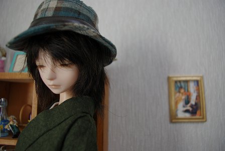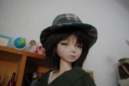 長い間ぺちゃんこに保管されていたようで、ウィッグがたいへんなことになっていたので帽子着用(笑)