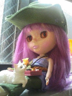 写真を撮ったのは夏だったかしら。足の上にあるのは食玩(?)のケーキセットとにゃーごのねこちゃんです。にゃーご大好きですv 他にもいっぱいいます。コンプリートはしてないですけど。この子はそのシリーズで一番ほしかった子だったのですごく嬉しかったです。最近は売ってないですね~。
