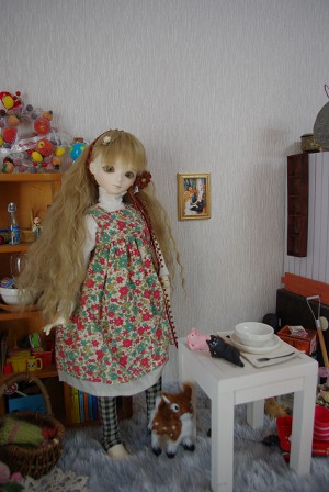 ↑の写真は実家でケータイで撮ったもの。家にいる時はお迎えしよう、なんて思ってなかったので何もお洋服とか持って行ってなかったんです。ウィッグは空美都(TFルイス)用に購入したもの(もともとこれが目当てで行った)。洋服は連れて行っていたてん子さん(PAIエリエル)の上着。