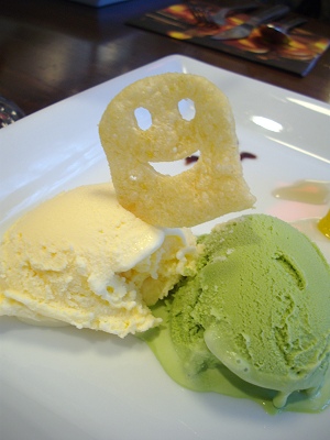 今月のデザートはかぼちゃプリンとアイス。甘くておいしかった~v ばけがいますv