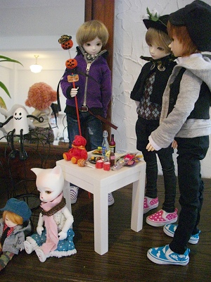 MKR46のぐりさまのお子たちと一緒に撮らせてもらったもの。この鏡の前では、持って来た小物を使ってハロウィンパーチーしてました。占領しててすみませんでした…。でもお客さんが何人かいらしてくれて楽しかったですv