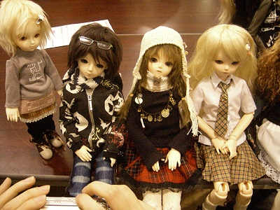 左の3体がfelicitaのえあこさまがオーナーの汐ちゃん(幼SD千夏)、観架くん(TFトミー)、聖ちゃん(TFオリーブ)。そのお隣がtRipper!の夢乃屋くりこさまがオーナーの小瑠璃ちゃん(TFオリーブ)です。
