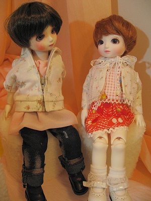 申し合わせもせず茶髪のショートカット&小花柄のパーカー。アイは2人とも紫なんですよ~。す、すげえや!