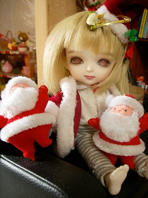 こんな格好です。てん子さんは一人クリスマスです。気づいたらこんな格好をしていました。葛野はやっぱり服が無いので(笑)そうそう、葛野ですが、お口を大変なことにしてしまったわけで塗りなおしたんですが、すんごい浮いてます。もうどうしようもないのでこのままで行きますが…(泣)