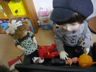 というわけで(?)我が家にあるちまいお人形さんたちの名前を決めようおひろめしようかと寸劇を作ったんですがいつもの通り落ちが無いです(笑)